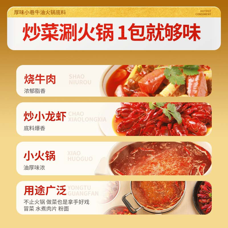 【原价46.9,直降7,领券减20,88vip减1,淘金币抵扣0.93,到手仅需17.97】厚味小巷牛油火锅底料微辣320g*2袋,超赞!!!