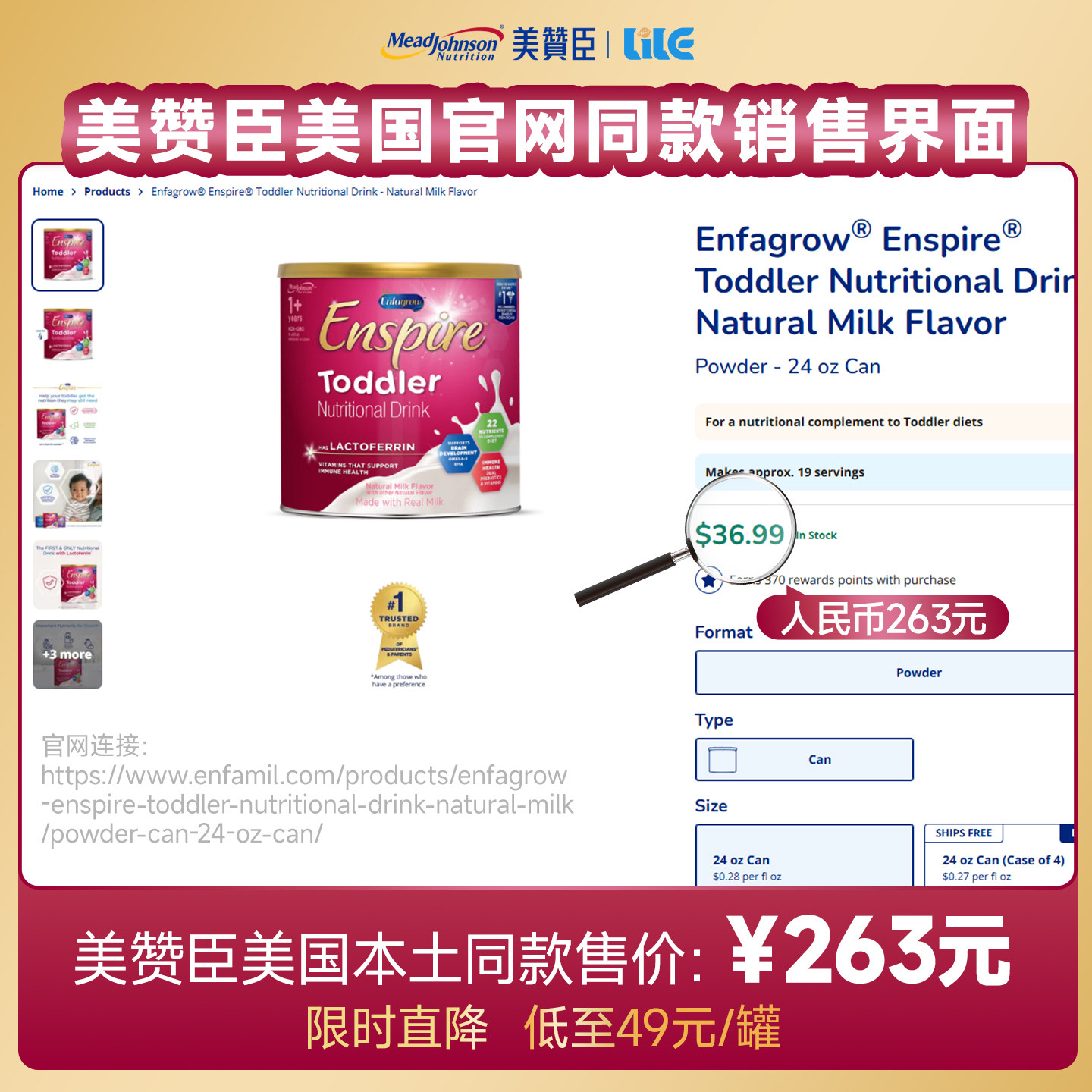 临期26.6美版美赞臣蓝臻3段乳铁蛋白婴幼儿童奶粉680g*6罐 【售价】:¥489.46 【券后】:¥129.46 【优惠券】:¥360 推荐理由:临期特惠!美版美赞臣蓝臻3段奶粉680g*6罐,含乳铁蛋白,营养全面,适合1-3岁宝宝,性价比超高,抓紧抢购! 👉复制这条信息打开【手机淘宝APP】即可领券购买:/