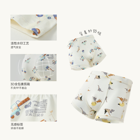 Q21天丝棉儿童印花平角内裤抑菌男童四角不易夹P宝宝纯棉内档短裤