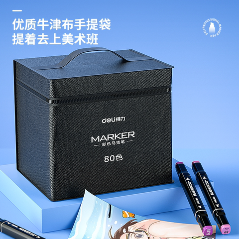 得力马克笔,国家标准,儿童可放心使用,安全无异味,速干油墨,适用多场景、多材质,色彩鲜艳,覆盖力强,各种底色,任意绘画!