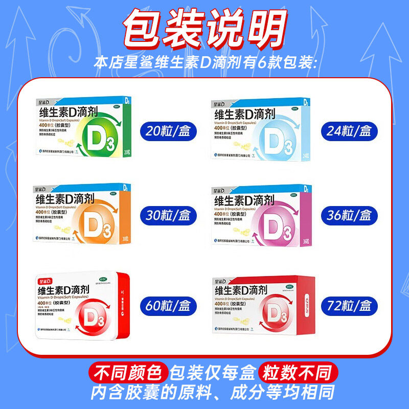 星鲨维生素D滴剂儿童胶囊型,含维生素D3,专为儿童设计,有效预防佝偻病和骨质疏松。安全可靠,呵护孩子成长发育!