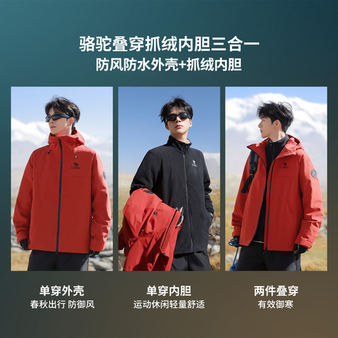 骆驼防风防水三合一抓绒 【售价】:¥619.00 【券后】:¥504.00 【优惠券】:¥115 推荐理由:这款骆驼户外冲锋衣采用经典三合一设计,外层具备可靠防水性能,内里加厚保暖,适合冬季登山及日常通勤。亮眼新年红色,既应景又提升户外辨识度。男女同款剪裁,兼顾防风、透气与舒适性,一衣多穿,应对多变天气。作为专业户外品牌,骆驼注重实用细节与耐用面料,是冬日出行的贴心搭档。 👉复制这条信息打开【手机淘宝APP】即可领券购买:/