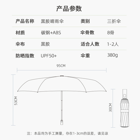 折叠全自动抗风黑胶晴雨伞