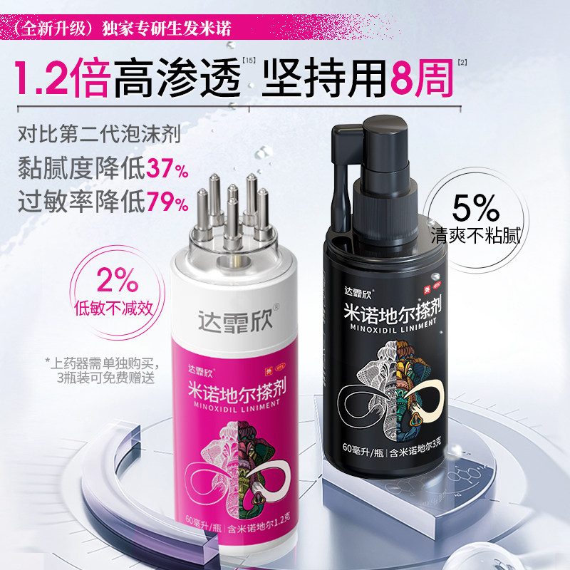 【叠加淘金币7.6元,到手46.4元,下单即赠生发礼 上药滚珠瓶+防脱10ml*3】达霏欣米诺地尔搽剂治疗脱发生发液斑秃,超赞!