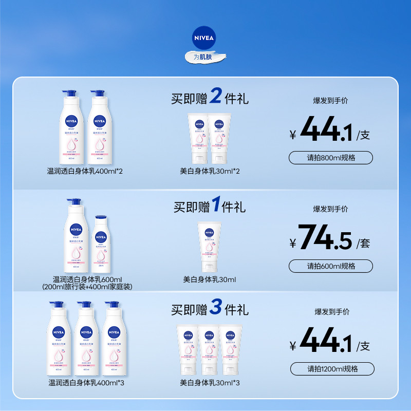 妮维雅14天持续美白大白瓶身体乳 【售价】:¥178.00 【券后】:¥161.00 【优惠券】:¥17 推荐理由:妮维雅烟酰胺美白身体乳液,14天见证三维透白,打破传统美白定式,德系专研,配方高效稳定,温和配方,呵护肌肤,美白无负担,有效保湿,白皙更通透。 👉复制这条信息打开【手机淘宝APP】即可领券购买:/