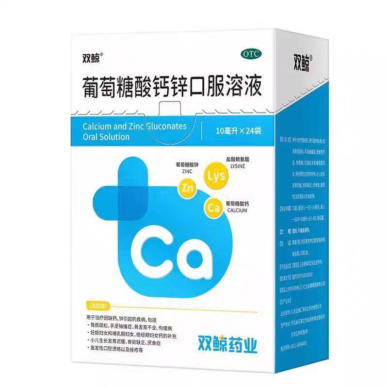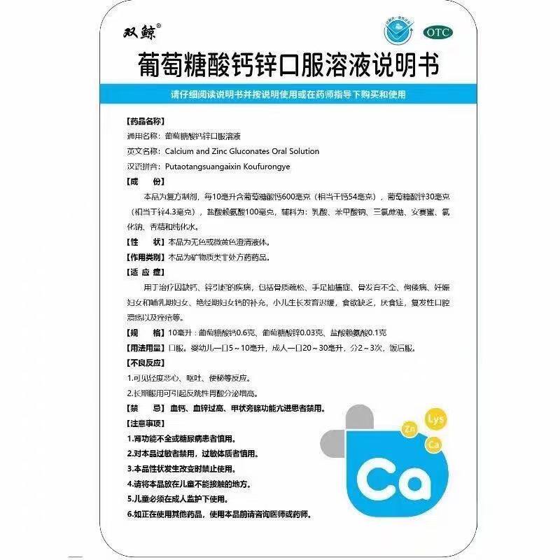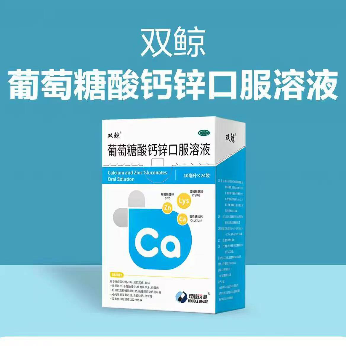 婴幼儿童助长高双鲸葡萄糖酸钙锌口服溶液赖氨酸非铁液体钙厌食