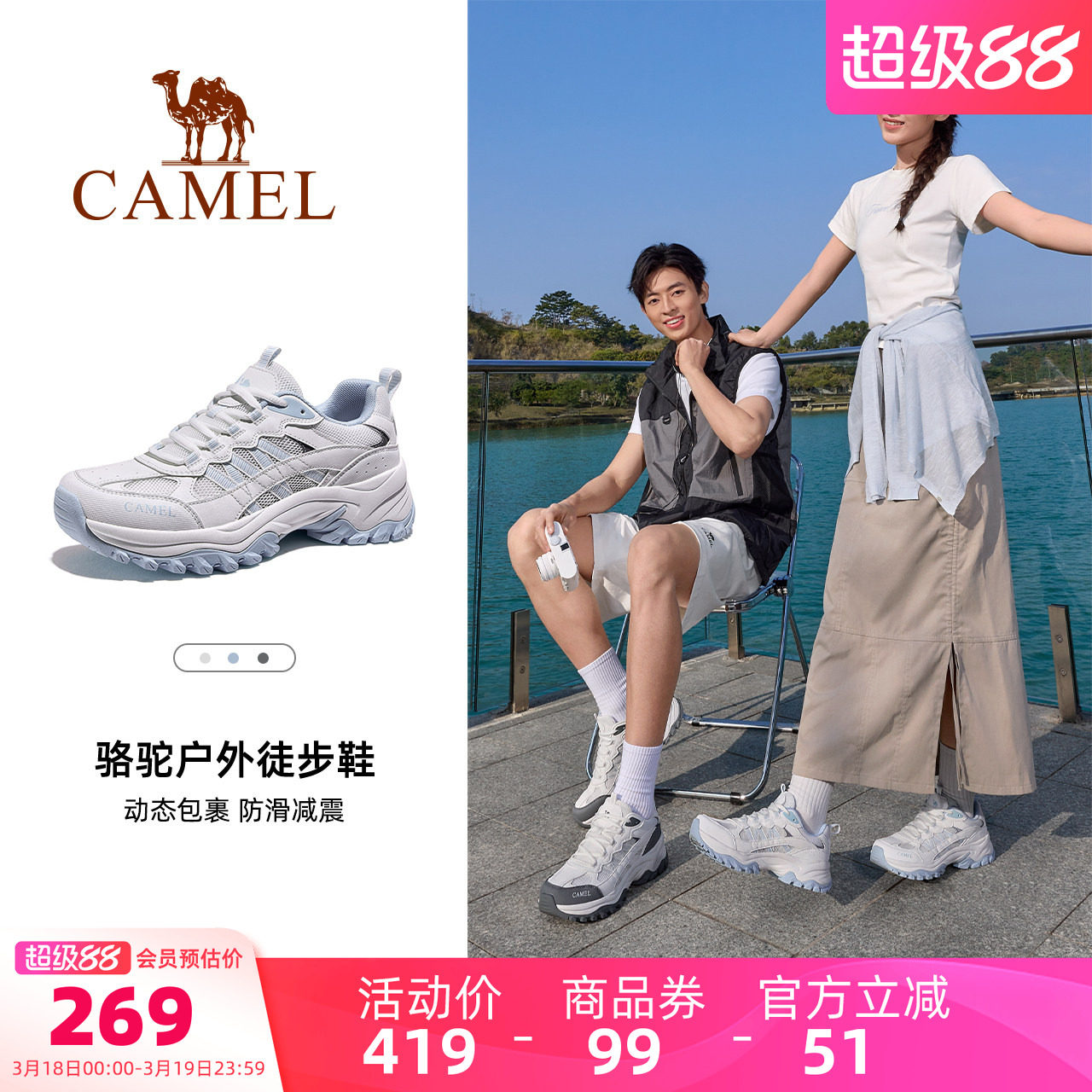 【礼金后215.2,叠消费卷+金币.低】,骆驼男鞋2026春夏新款户外登山鞋男网面透气情侣休闲运动老爹鞋女