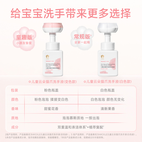【29.9两瓶,叠淘金币价.低】,wickle宝宝专用泡泡洗手液儿童泡沫型猫爪洗手液温和儿童洗手液