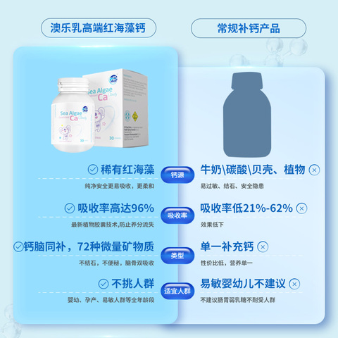 【拍3瓶装到手159元,叠淘金币2实际到手157元,每瓶均价52.33元】澳乐乳海藻钙儿童液体钙,天然海藻钙吸收更高效,添加核桃油营养更丰富,抓住宝宝长个黄金期!成分干净,妈妈安心~
