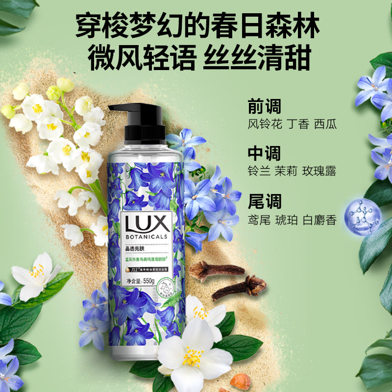 力士植萃精油香氛蓝风铃香烟酰胺沐浴露。。