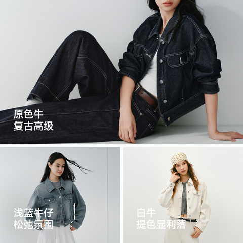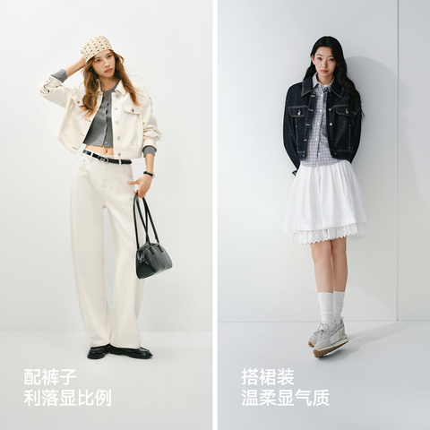 森马牛仔外套女春季短款翻领落肩宽松做旧2026新款工装风高街夹克