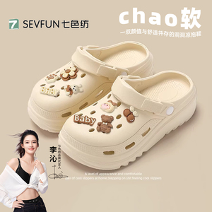 七色纺厚底洞洞鞋女款夏季2026新款防滑防臭凉拖鞋男士踩屎感外穿