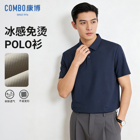 【康博冰感POLO衫短袖,39元抢!】多色可选,冰丝材质凉感舒适,高弹抗皱,防晒抑菌,商务休闲皆宜。3D立体裁剪,透气不闷汗,品质有保障,性价比超高!【赠运费险】