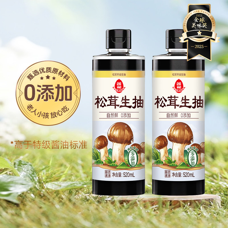 莲花松茸特级生抽酿造酱油520ml*1瓶+50g松茸鲜*2袋凉拌炒菜