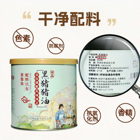 速抢!!铁罐装黑猪油!配料表只有黑猪油!现在9.8到手300g!0防腐剂0香精0色素,连盐都没加一粒!减脂期也能吃!0添加黑猪油健康无负担,错过这次下次不知道啥时候了!别错过!