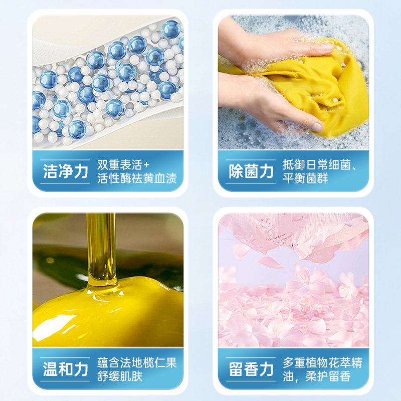 【49.9-券24-立减6-淘金币0.99=18.91元】能轻松洗去衣物上的细菌和残留物,守护你娇嫩的肌肤。其独有的香氛技术,能够为衣物带来持久留香的效果,仿佛给身体带来清新的拥抱。