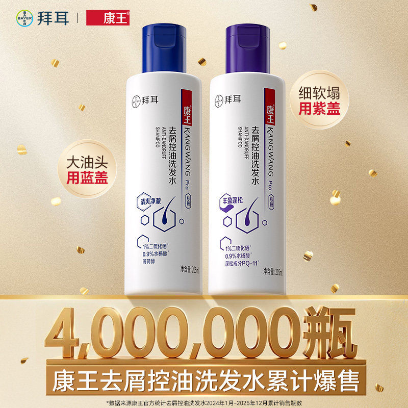 【拍两件205g的规格!送40ml*2+洗发梳*1(价值64.7)】活动截止2.06!康王去屑二硫化硒洗发水!去屑,去油,止痒,深度修护受损发质,72小时持久顺滑,令秀发更清爽蓬松,有效减少断发,洗出强韧好发质,密集水光护理,深入填充发丝,呵护你的秀发,让你头发蓬松滑亮,拯救软塌头【赠运费险】