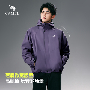 骆驼夹克连帽冲锋衣防水
