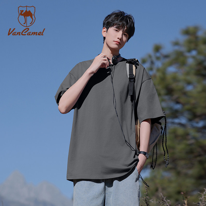 VANCAMEL/西域骆驼重磅精梳棉短袖男女同款舒适透气圆领T恤上衣