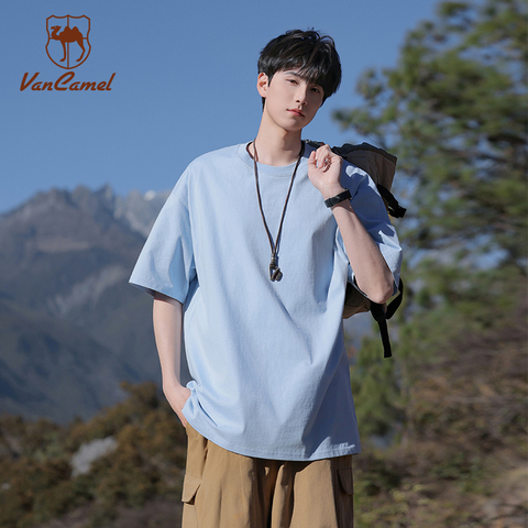 VANCAMEL西域骆驼精梳棉短袖T恤,男女同款,透气舒适,经典圆领设计,适合日常穿搭。纯棉材质,柔软亲肤,春夏必备单品!