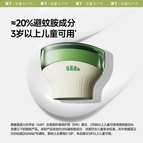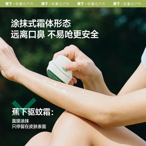 蕉下户外便携式驱蚊霜,含避蚊胺,长效防蚊。乳液质地清爽不黏腻,易涂抹不脏手,便携小巧。露营、旅行、野外出行都适用,温和护肌,远离蚊虫叮咬,户外安心必备。