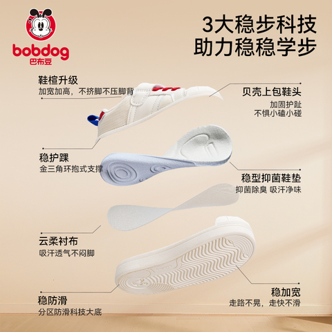 巴布豆幼儿园小白鞋春季新款,防滑透气设计,宝宝学步更舒适!男童女童通用,柔软鞋底呵护脚部,室内户外都能穿