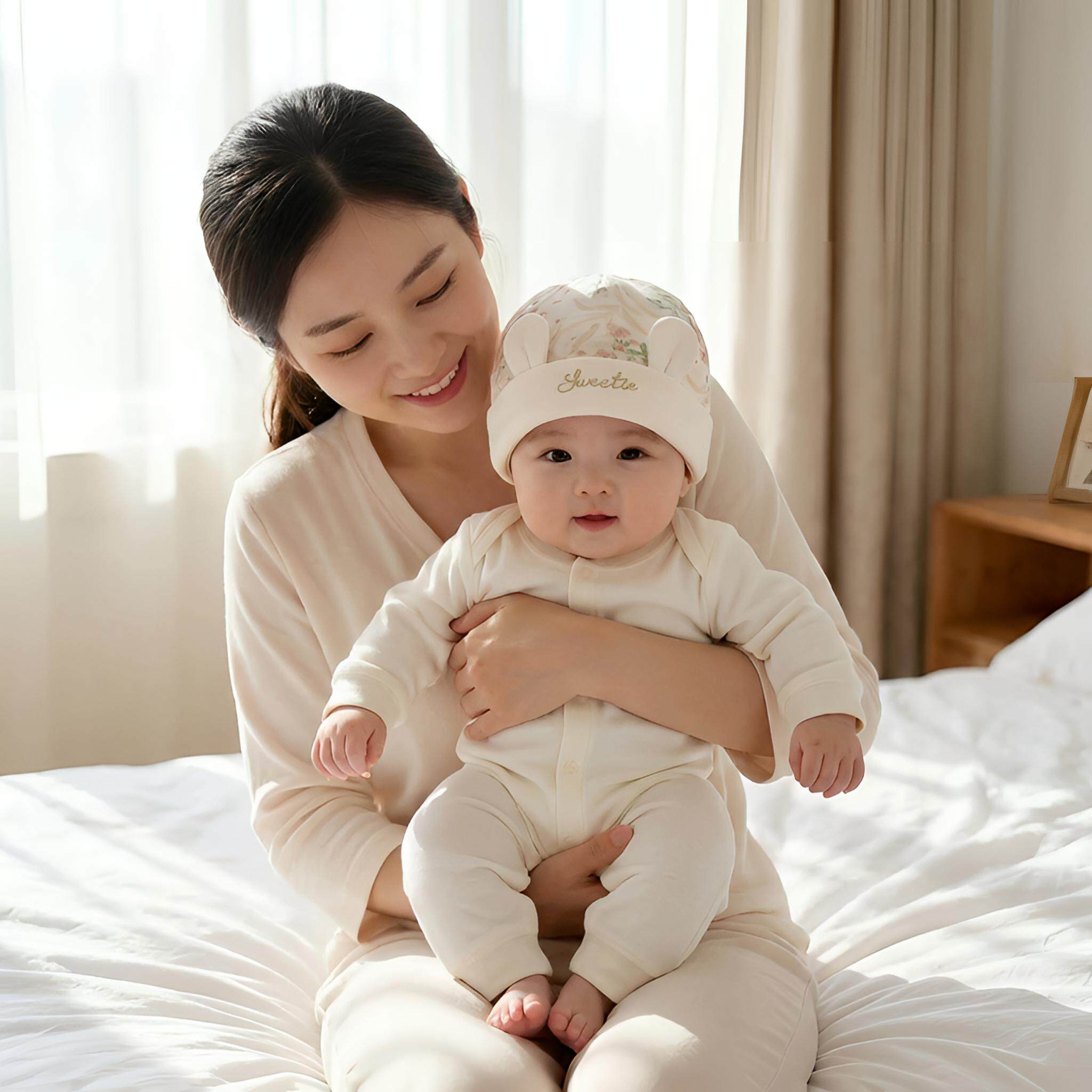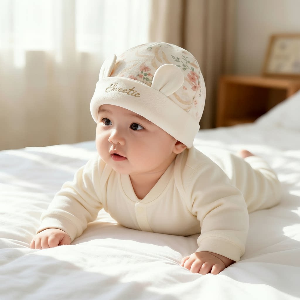 新生儿纯棉护囟门兔子耳胎帽