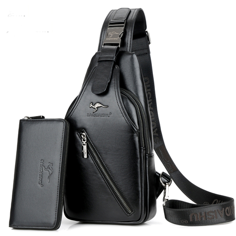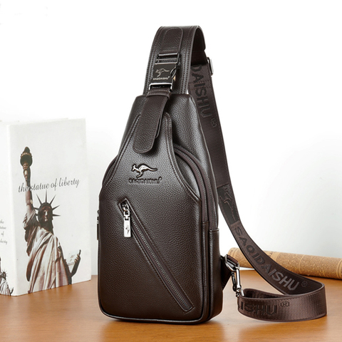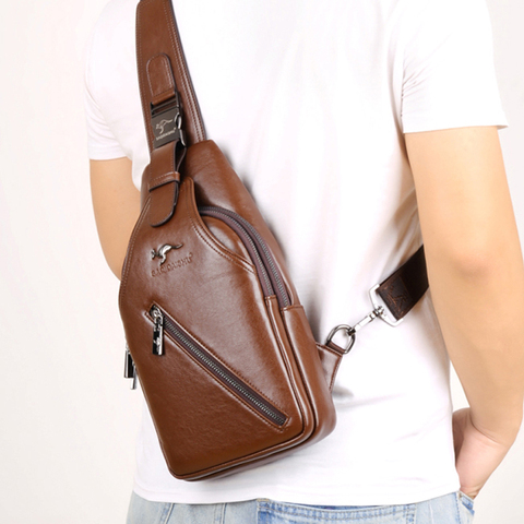 袋鼠正品男胸包,牛皮休闲商务包,精致五金。时尚版型,简约大气,耐用材质,质感清晰,背法可单肩/斜跨,【赠送运费险】