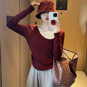 大码女装胖mm穿搭慵懒风显瘦假两件拼接撞色小众上衣ak1