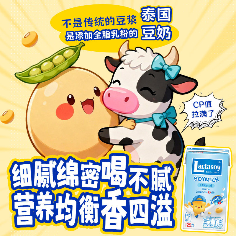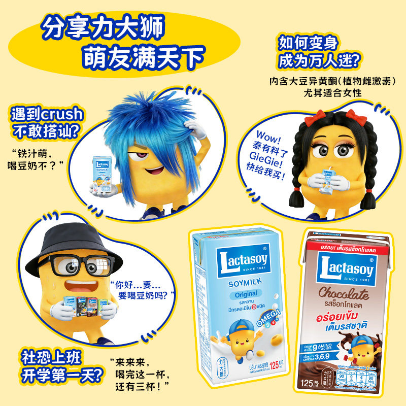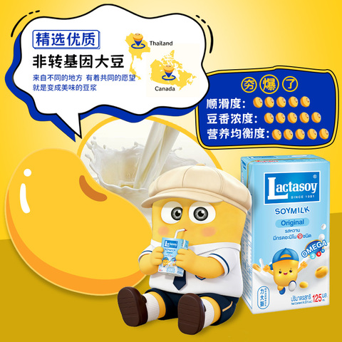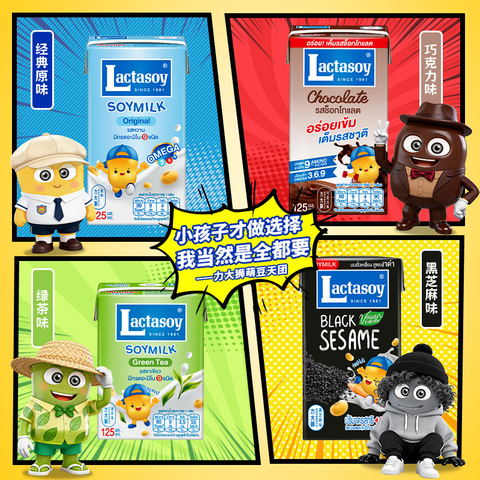 Lactasoy力大狮巧克力豆奶125ml*6罐,泰国进口,香浓可可味,营养丰富,适合儿童早餐饮用,美味又健康!