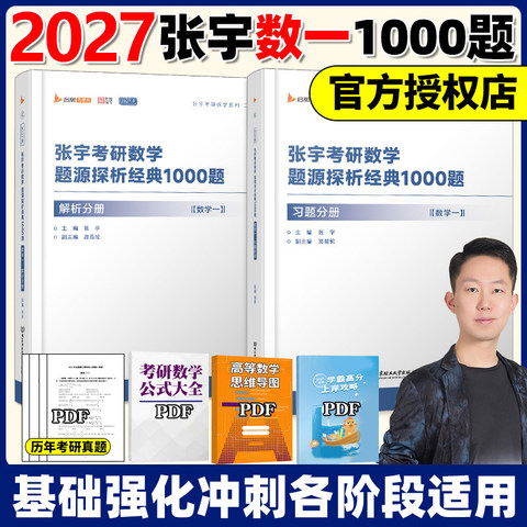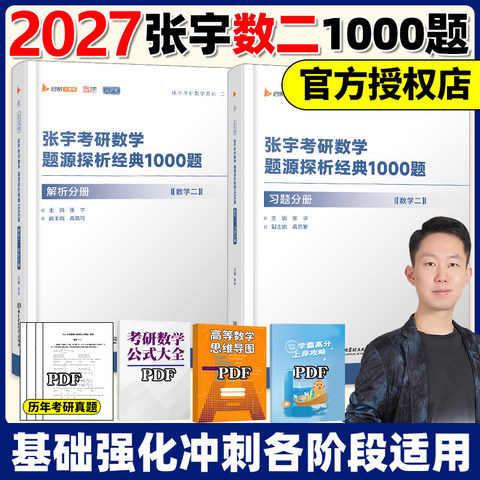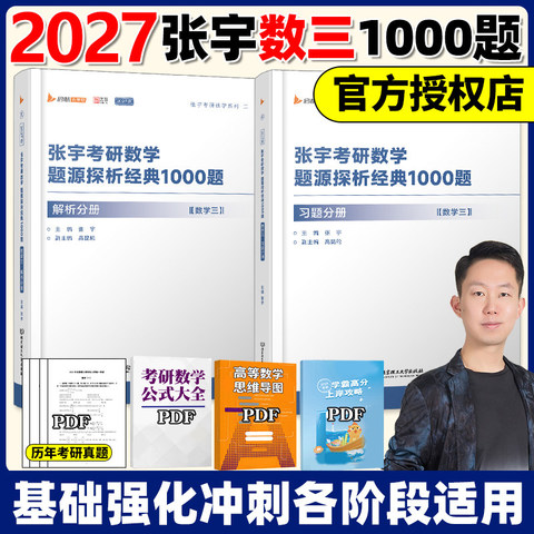 【赠视频+公式】张宇2027考研数学题源探析经典1000题(2026版),覆盖数一、数二、数三,搭配李永乐660题及线性代数辅导讲义,助力高效复习!