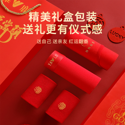 雅鹿100%纯棉鸿运本命年马年秋衣秋裤大红色打底保暖套装礼盒结婚