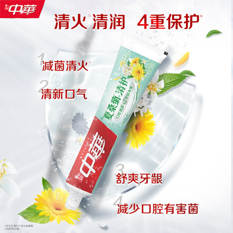 【官方立减2.4,淘金币0.39.】中华花清护牙膏护龈清润清新口气清凉固齿,传承《本草纲目》护龈精粹,现代活性酵素科技,国家中药牙膏发明专利
