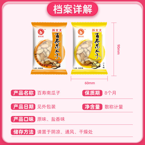 拍二件!苏太太百寿南瓜子400g独立小包,精选大颗粒南瓜子,皮薄肉满,清香脆口 个头均匀,颗粒饱满,嘴馋嗑一嗑~清脆口感,保留果实原香!