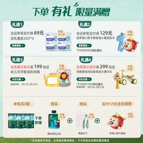 英氏高铁米粉婴幼儿加铁加锌米糊 【售价】:¥59.87 【券后】:¥46.87 【优惠券】:¥13 推荐理由:买3罐送弯曲叉勺+婴标果泥(正装)+米粉30g+乳霜纸30片*4,东北绿色大米低敏,强化二价铁易吸收,微米级细腻,纯粹植物蛋白配方,不多余添加,呵护宝宝娇嫩肠胃,全链用心!【赠运费险】 👉复制这条信息打开【手机淘宝APP】即可领券购买:/