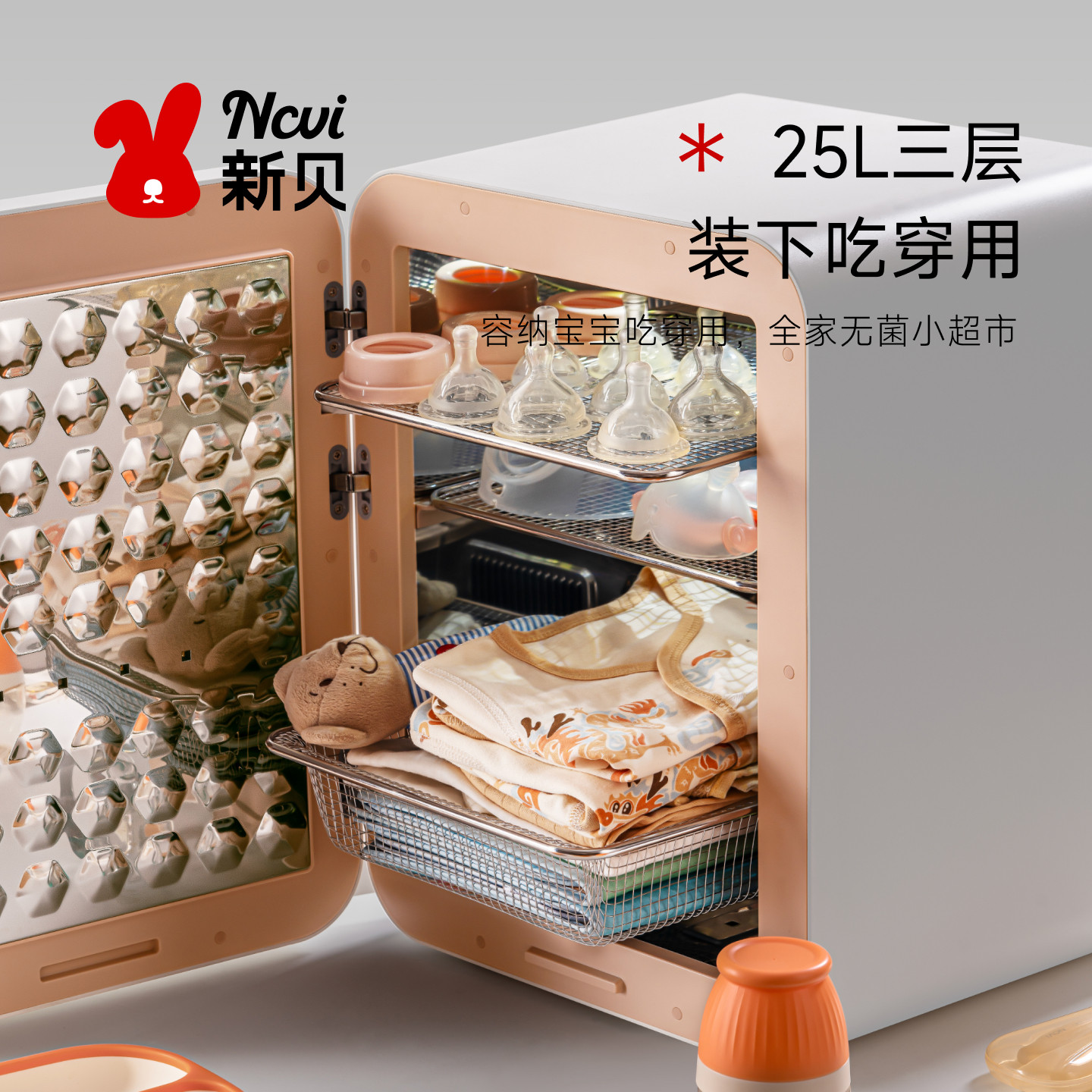 【18颗灯珠24L国补券后397.5元,叠淘金币84.42元,叠消费券到手293.88元 32颗灯珠25L国补券后537.5元,叠淘金币105.34元,叠消费券到手403.93元。300+产品专利,30+消毒专利技术宝妈用得更放心~】新贝8032消毒柜紫外线+烘干二合一,家用小巧不占地方,奶瓶、辅食工具都能消,宝妈带娃超轻松!【赠运费险】