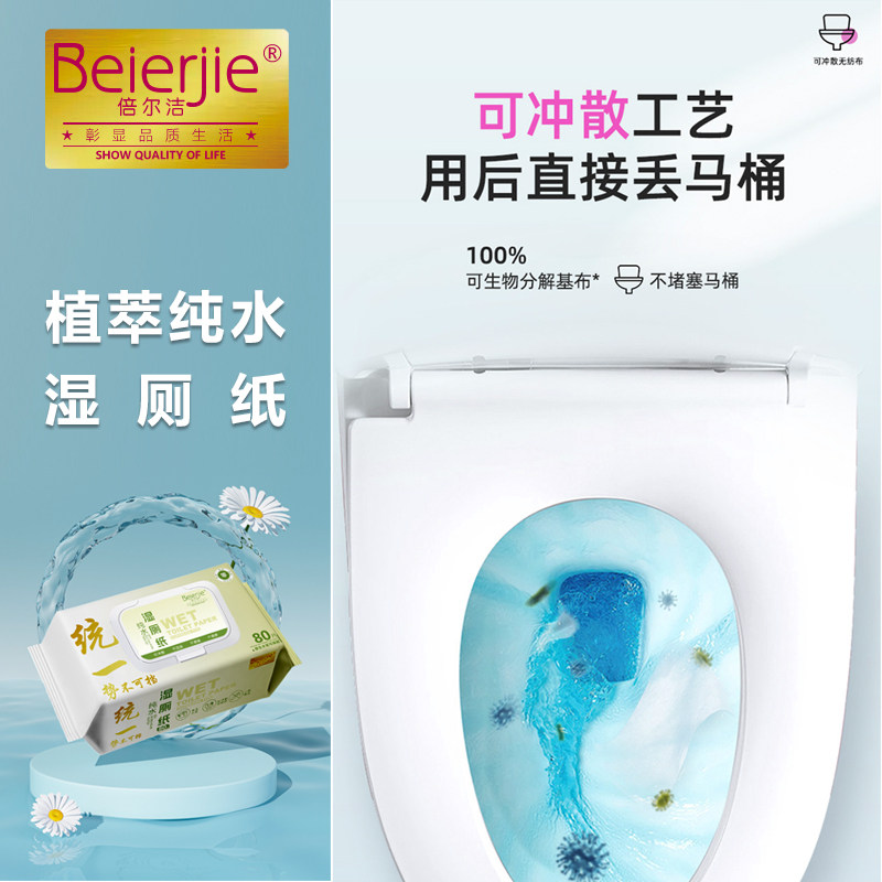 家用湿厕纸【80抽*3包】纯水可冲散擦屁屁大号湿纸巾去污加厚
