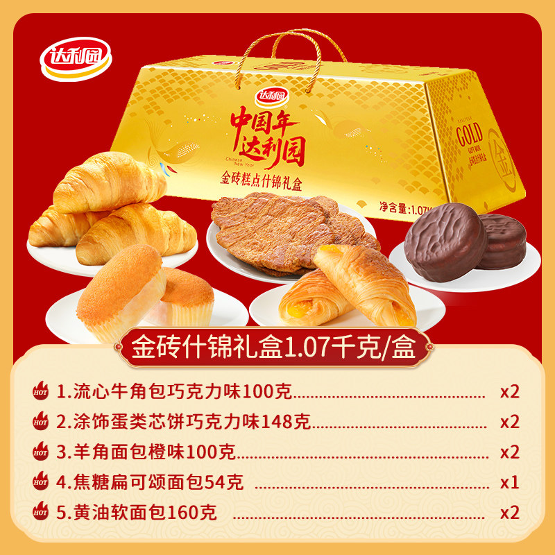 达利园糕点休闲金砖礼盒装1070g零食大礼包早餐代餐小吃