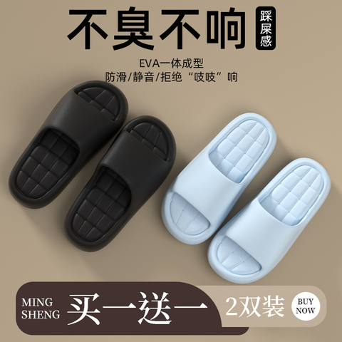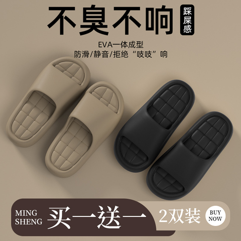 买一送一踩屎感拖鞋男士夏季室内家居防滑防臭凉拖女厚底浴室外穿