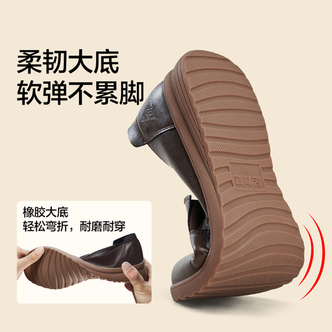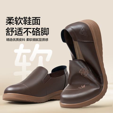 足力健妈妈鞋舒适春季软皮小皮鞋