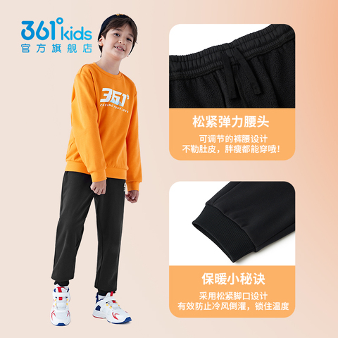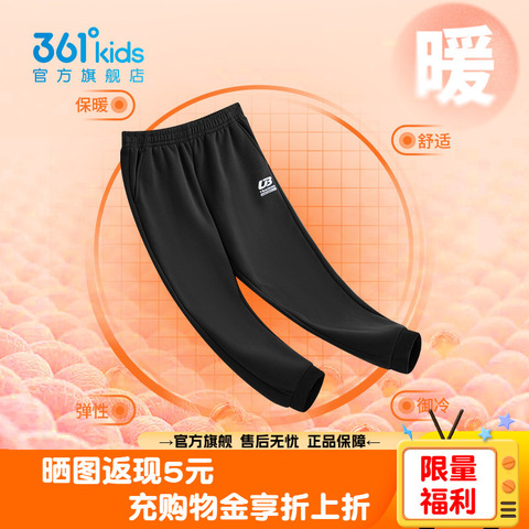 【拍两件,叠5.86淘金币,折48/件】 361童装男童加绒运动裤冬季儿童黑色保暖长裤女童加厚防寒针织裤!!