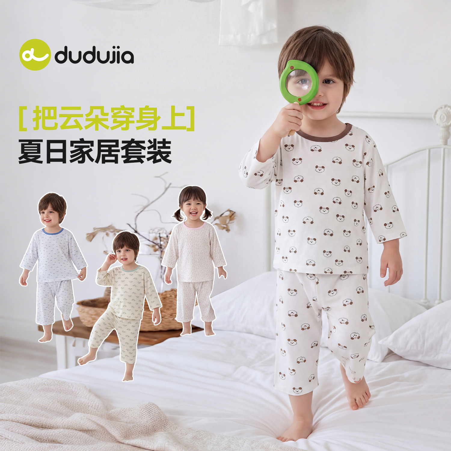 【夏季薄款两件套!】嘟嘟家儿童睡衣套装,透气吸汗,柔软舒适,适合男童女童,居家穿着超舒服!宝宝爱穿妈妈放心!