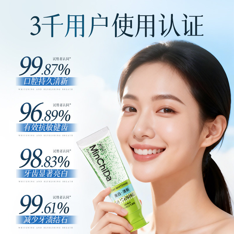 【敏齿达】鲜萃美白清新爆珠牙膏高效美白去渍24h持久清新口气