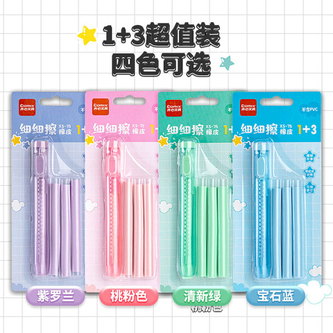 细细擦3套8.9元 推拉擦3套10.9元 齐心冰淇淋推拉橡皮小学生专用橡皮擦不易留痕无屑超干净橡皮擦儿童!、
