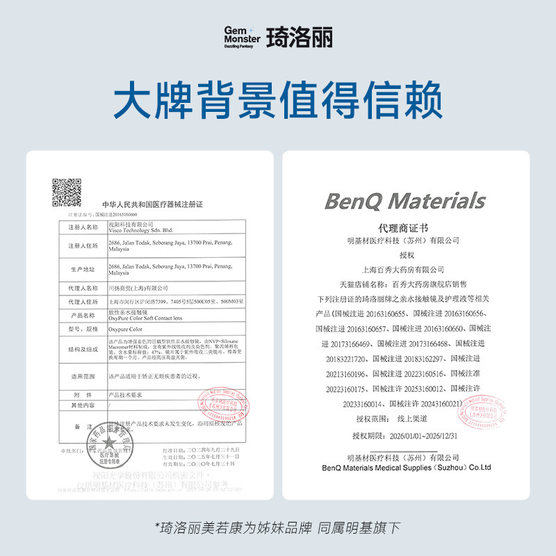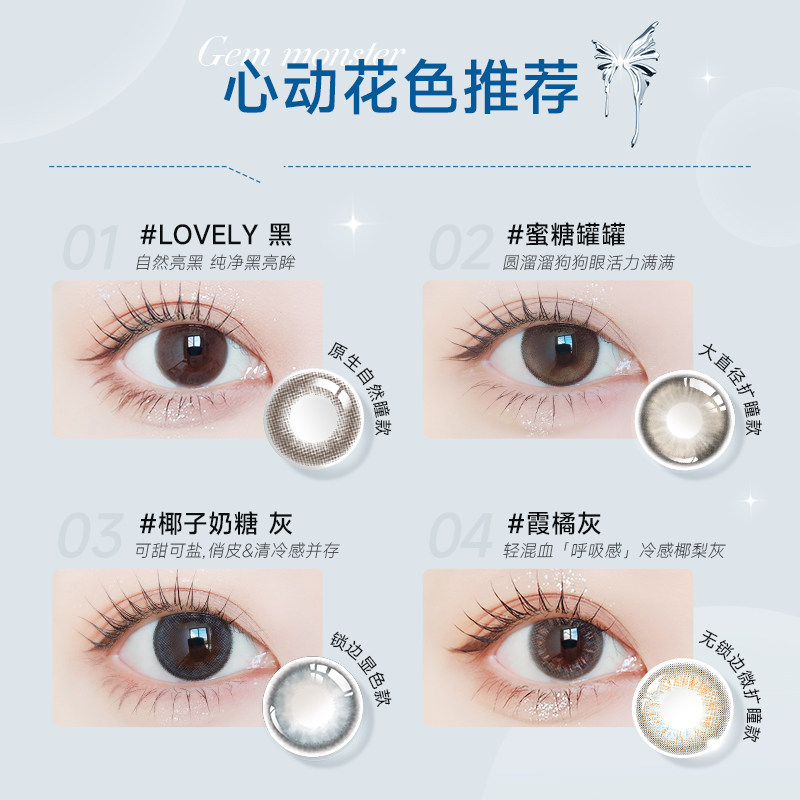 【清库】GemMonster琦洛丽美瞳硅水凝胶月抛2片明基隐形眼镜