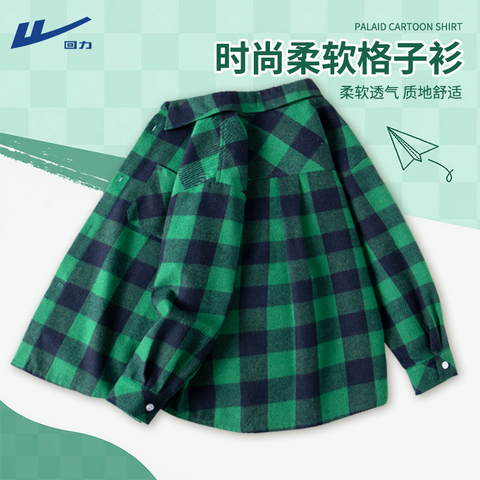回力男童衬衫春秋款2026新款大童学院风长袖儿童秋装男孩格子外套