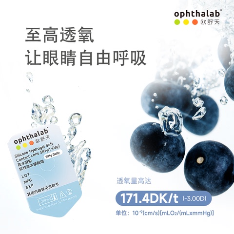 ophthalab全氧维度硅水凝胶日抛30片欧舒天近视隐形眼镜高透氧