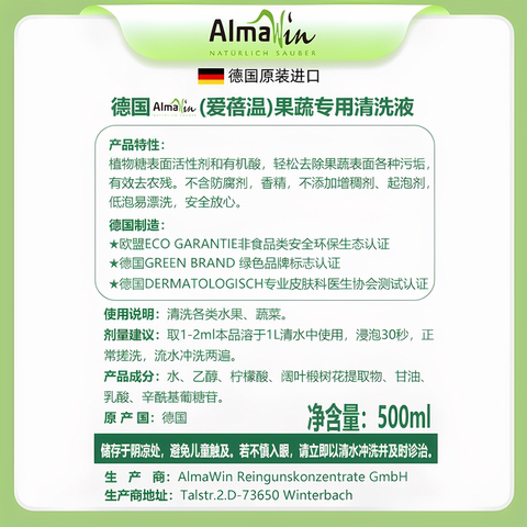 Almawin爱蓓温超浓缩果蔬清洗剂