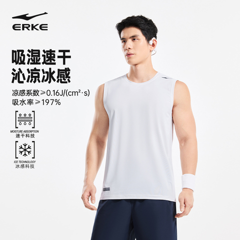 【叠5.52淘金币】 鸿星尔克速干背心男短袖T恤,夏季运动健身,冰丝材质透气速干,舒适轻便!运动穿搭必备!!