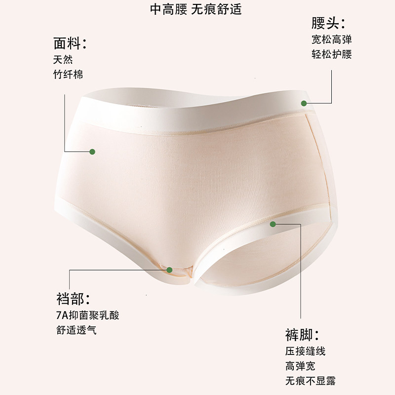 蕉轩竹纤棉抑菌聚乳酸内裤女无痕舒适透气少女中腰三角短裤新款